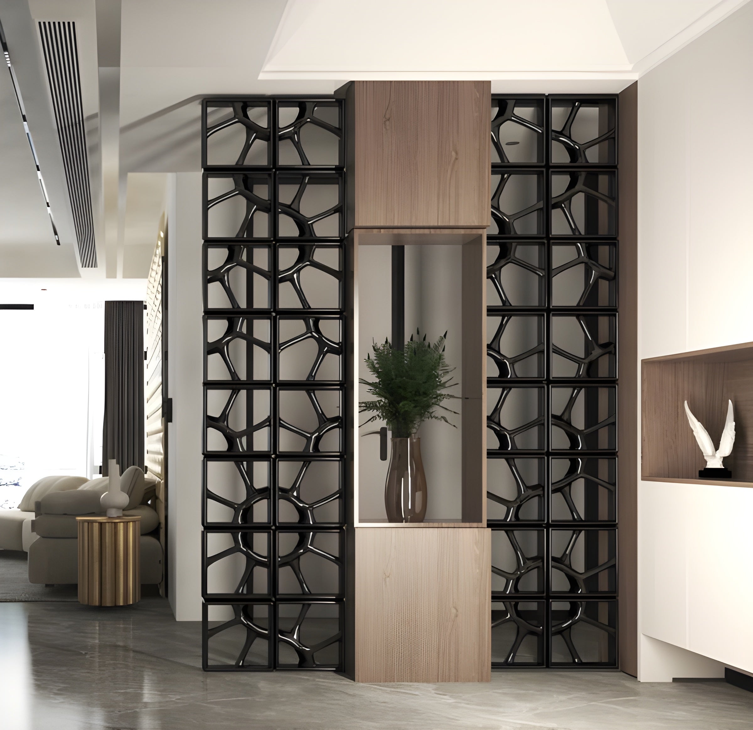 فاصل الغرفة - قسم يتميز بارتشن الداخلي بتصميم مبتكر يجمع بين منتجات خشبية بديلة وبلوكات، ويتكون من...