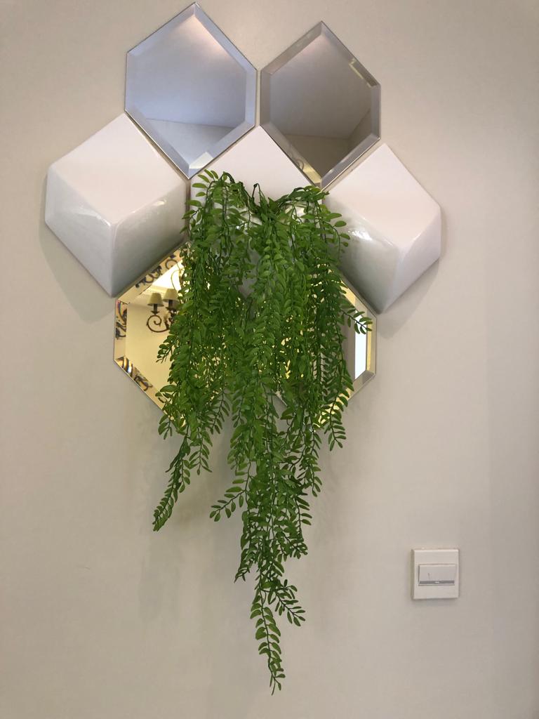 تتكون هذه الجدارية من قطع خزفية سيراميكية متداخلة مع حوض زرع جداري ومرايا سداسية، لتشكل معاً قطع...