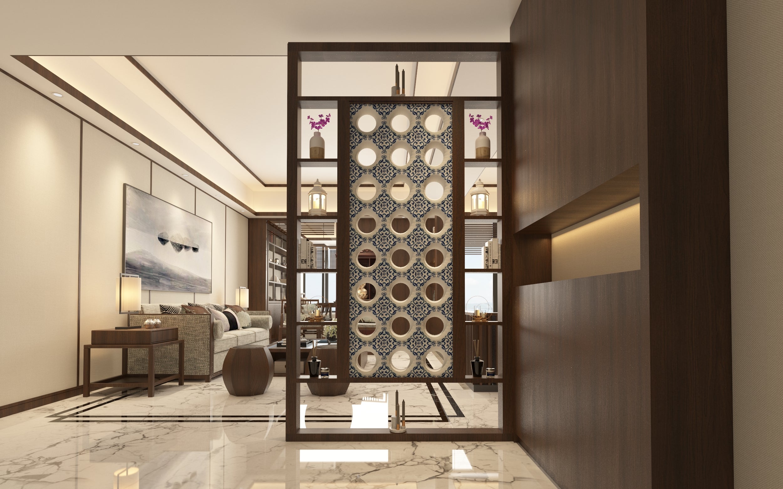 تباين فريد يجمع بين نماذج الأعمال الخشبية الداخلية وبلاطات البورسلان الديكورية، بارتفاع 220 سم إلكترونيًا 120 سم، مع عرف للزينة مع إمكانية تعديل التصاميم حسب الطلب مطالب التصميم المختلفة.