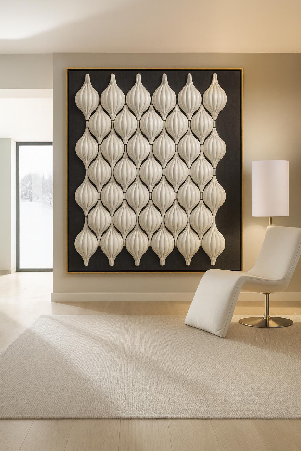 جدار مزين مصنوع من النحاس على شكل صدفة، مصنوع يدويًا بدقة عالية، على مجلس فخامة وأسلوب أنيق....